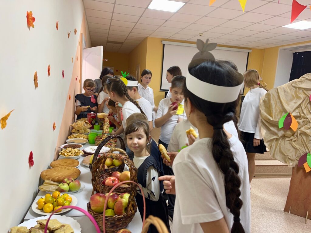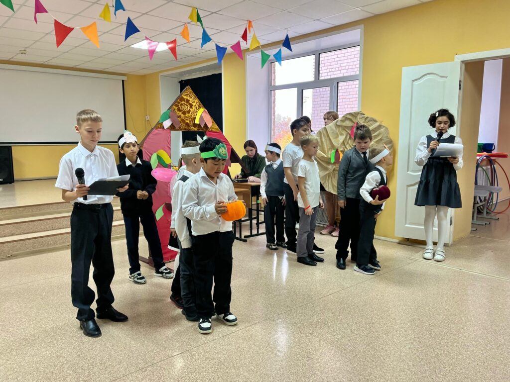24 октября в начальной школе царила атмосфера тепла и радости – состоялся традиционный «Праздник Урожая». Это мероприятие, ставшее доброй традицией, объединило учеников, учителей и родителей в ярком калейдоскопе осенних красок, песен и, конечно же, щедрых даров природы.Праздник начался с торжественного открытия в актовом зале, украшенном осенними листьями, гроздьями рябины и красочными натюрмортами, созданными руками учеников под руководством педагога доп. образования, И. Л. Шурыгиной.