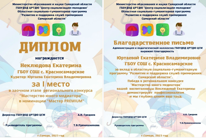 В начале 2022 года года стартовал проект при поддержке ГБОУ ДОД ЦРТДЮ «Центр социализации молодежи и Ассоциации школьных служб примирения Самарской области «Медиаторы спешат на помощь» в рамках открытой онлайн-школы «PRO-медиатор», в котором Катя активно участвовала.